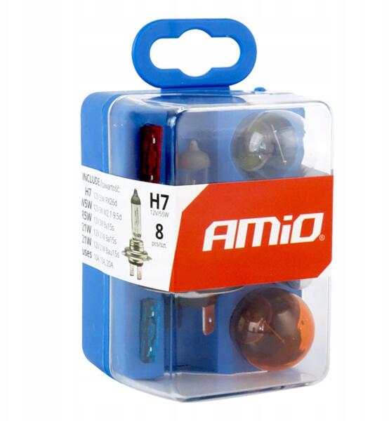 AMiO 8 db H7-es halogénizzó és biztosítékkészlet autóba