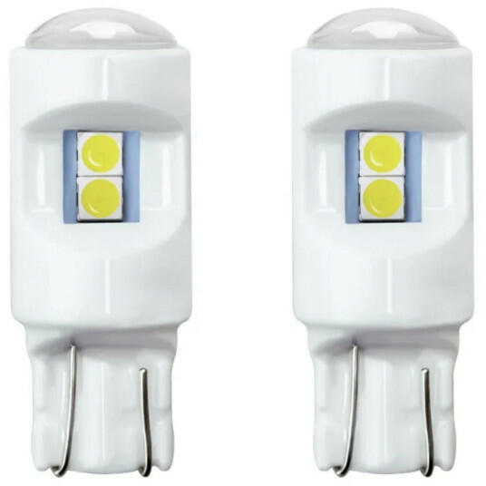2db-os T10-3030-6SMD 12V A legelterjedtebb autós LED foglalat a T10. Jellemzően a műszerfal , valamint visszajelző piktogrammok megvilágítására szolgál, valamint sokfelé használják az autóban: helyzetjelzőként , belső utastér világításként vagy rendszámtábla világításként. Adatok: Tápellátás: 12V Foglalat: T10 / W5W Teljesítmény: 1,2W LED-ek száma: 6db/izzó LED típusa: 3030 SMD Színhőmérséklet: 6500K (hideg fehér) Fényáram: 360 lumen Kiszerelés: 1csomag/2darab