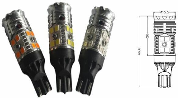 Piros közepes Can-Bus kompatibilitás Kialakítás 16db 3030 méretű SMD LED Feszültség 12V Polaritás P olaritás függő - NEM mindegy hogyan van behelyezve a foglalatba Teljesítmény Fehér, sárga = 13W