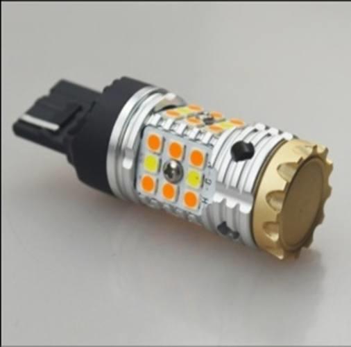 T20 7443 - W21/5W indexbe való Extrém erős sárga + fehér helyzetjelző LED Rendkív ül gyors átkapcsolási ideje miatt Ideális olyan nappali menetfény izzó helyére ahol az izzónak irányjelző funkciót is el kell látnia. A legtöbb autóban* kiegészítő terhelés nélkül is normál sebességgel fog villogni, hibajelzés nélkül!8SMD LED-del helyzetjelző álláson fehéren világító T20-as LED ami irányjelzés esetén átvált 24SMD LED-del világító sárgára. Sajátossága, hogy előrefelé nem világít, ezért nem hoz létre erősen világító foltot a lámpatest búráján. Jellemzők: