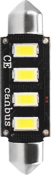 Izzó: C5W, C10W, szofita, SV8.5 Hosszúság: 42mm LED típus: 4x5730 SMD CAN BUS Szín: fehér Teljesítmény: 2W Feszültség: 12V