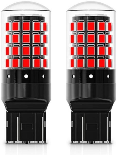 W21/5W 7443 T20 CANBUS PIROS LED féklámpa / helyzetjelző  izzó égő 12V 2db-os készlet, saját raktárról  1 év garanciával !   Az ár a 2 db-os készletre értendő.   Kiváló minőségű, extra magas fényerejű, Canbusos LED izzó,  így nem fog hibát jelezni az autó.