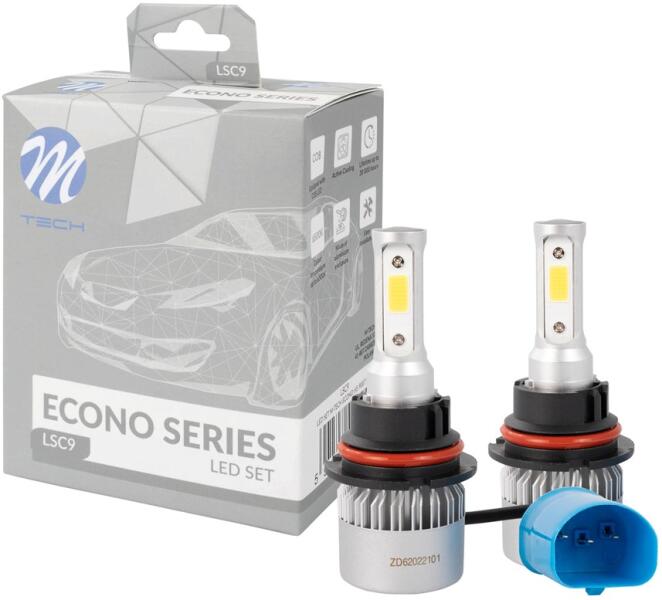 LED-készlet LSC M-TECH ECONO sorozatA hagyományos világítás LED-technológiára történő átalakítására tervezett készlet. Minden készlet 2 darab eredeti Epistar 1021 COB chipen alapuló LED-pótlót tartalmaz. A diódák fényes, erős fényt bocsátanak ki, amely garantálja a maximális hatékonyságot éjszaka. A diódák optimális elrendezése lehetővé teszi a fény optimális vágási vonalának és szögének beállítását. FONTOS JELLEMZŐK- erős, hatékony COB LED-ek- alumínium mag a hőelvezetés érdekében- hűtőventilátor- levehető talpnyakörv kiegészítő szilikon tömítéssel- fém ház- kompakt méret a könnyű telepítéshez- egyszerű beszerelés a járművön lévő elektromos rendszerbe való beavatkozás nélkül- jó ár-érték arány Műszaki adatokMegnevezés: HB5 9007 H/LTeljesítmény: max. 80W/készletFeszültség: 9-32VLumen: max. 10 000lmLED típusa: LED típus: COBSzínhőmérséklet: 6500K-igHáz: alumínium ötvözetÉlettartam: akár 30 000 óra
