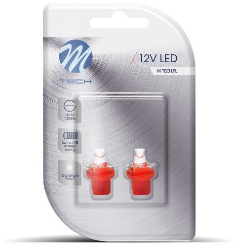 M-Tech T5, R5 LED dióda piros színű (pár)Izzó: T5, R5 Izzó típus: B8.5D LED típus: 1xLED Szín: Piros Teljesítmény: 0,2 W Feszültség: 12V Diódák típusa: 5mm, hengerelt Kérjük az NKH (Nemzeti Közlekedési Hatóság) ide vonatkozó rendeletét tanulmányozza a LED fényforrások használatára vonatkozóan! Ezen jármű-felszerelési cikk közúti forgalomban nem használható, kizárólag közút vagy közforgalom elől elzárt magánúton, vagy zárt pályás rendezvényen közlekedő járműre szerelhető fel. Beszerelését bizza szakemberre!