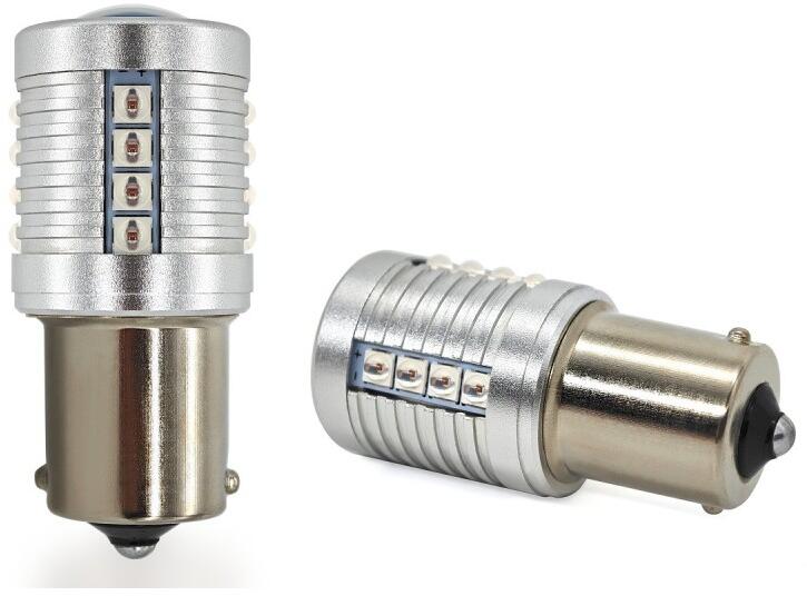 Az izzók LED-es helyettesítője: R5W, R10W, P18W, P21W, P25, 6137, 1156, egyszálú izzószál, piros Ezt a LED BA15S izzó modellt leggyakrabban a következőként használják: féklámpák hátsó helyzetjelző lámpák ködlámpák jachtlámpák Kérjük, vásárlás előtt győződjön meg arról, hogy az izzó felszerelésének típusa megegyezik az Ön autójában lévővel. Specifikációk: Bulb mounting type: R10W, P18W, P21W, P25, 6137, 1156) LED-ek száma: 20 LED típusa: LED-ek típusa: LED-ek típusa: LED-ek típusa: LED-ek típusa: CREE SMD 3030 Megvilágítási szög: 360 o Bemeneti feszültség (tápegység): 10-30V Áram 12,0V-on: 0,44A Áram 24,0V-on: 0,21A Fény színe : piros Kimeneti fényáram : 2000lm Működési hőmérséklet: -35 o és +55 o C között Polaritás : Nincs CANBUS : Igen Polarizáció : Polarizáció nélküli izzók, ami azt jelenti, hogy az autóban lévő + és - értéktől függetlenül bármilyen helyzetben világítanak. CANBUS: A beépített elektronika nem jeleníti meg az égett izzó hibáját a CANBUS busszal rendelkező autókban. Minden egyes terméket szállítás előtt egyedileg ellenőrzünk. Előnyök: alacsony üzemi hőmérséklet - nem okoz felmelegedést sokszorosan alacsonyabb energiafogyasztás magas hatásfok (akár 97%) ütésállóság azonnali indítás ellenáll a gyakori be- és kikapcsolásnak tartósság: ellenáll a kiégésnek, az indítás során fellépő feszültségtüskéknek élettartam: akár 50 000 óra jótállás, garancia: 12 hónap Tanúsítványok: CE