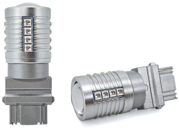 Az izzók LED-es helyettesítője: P27W, 3156, egyszálú izzószál: P27W, 3156, egyszálú izzószál , piros A P277W piros LED izzókat leggyakrabban a következő célokra használják: sTOP lámpák hátsó ködlámpák MEGJEGYZÉS! Kérjük, vásárlás előtt győződjön meg arról, hogy az izzók feltüntetett felhasználási területei egybeesnek-e az Ön autójában lévő izzókkal. Specifikációk: Bulb mounting type: P27W (opc. 3156) LED-ek száma: 20 LED típusa: LED-ek típusa: LED-ek típusa: LED-ek típusa: LED-ek típusa: CREE SMD 3030 Fényszög: 360 o Bemeneti feszültség (tápegység): 10-30V Áram 12,0V-on: 0,44A Áram 24,0V-on: 0,21A Fény színe: piros Kimeneti fényáram: 2000lm Működési hőmérséklet: -35 o és +55 o C között Polarizáció: nincs CANBUS: Igen Polarizáció: polarizáció nélküli izzók, ami azt jelenti, hogy az autóban lévő + és - értéktől függetlenül bármelyik pozícióban világítanak. CANBUS: A beépített elektronika nem jeleníti meg a kiégett izzó hibáját a CANBUS busszal rendelkező autókban. Minden egyes terméket szállítás előtt egyedileg ellenőrzünk. Előnyök: alacsony üzemi hőmérséklet - nem okoz felmelegedést sokszorosan alacsonyabb energiafogyasztás magas hatásfok (akár 97%) ütésállóság azonnali indítás ellenáll a gyakori be- és kikapcsolásnak tartósság: ellenáll a kiégésnek, az indítás során fellépő feszültségcsúcsoknak élettartam: akár 50 000 óra garancia, jótállás: 12 hónap Tanúsítványok: CE