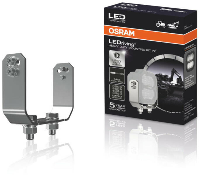 OSRAM LEDriving Heavy Duty Mounting Kit PX extra strapabíró rögzítőkészlet LEDriving Cube PX munkalámpákhoz, rozsdamentes acél, ±30° dőlésszög, LEDPWL ACC 102 (LEDPWL ACC 102)