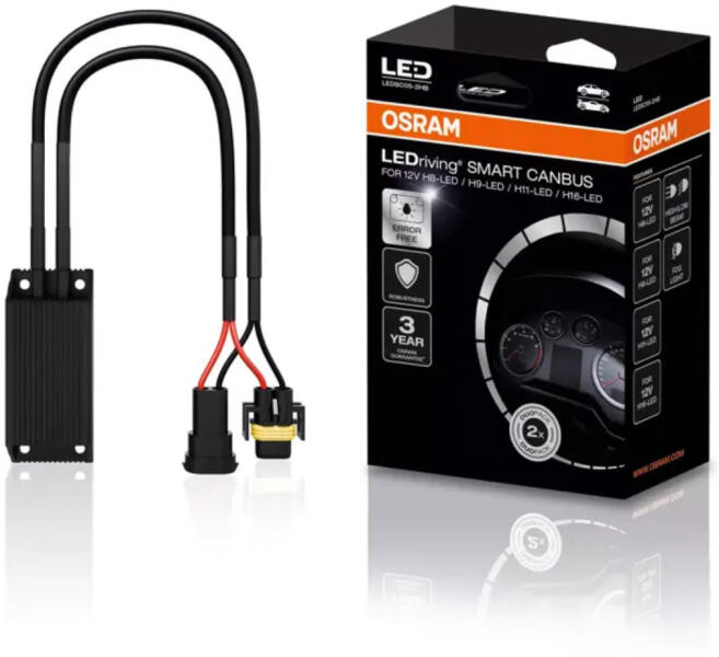 OSRAM LEDriving LEDSC05 Smart Canbus előtét ellenállás, LED hibaüzenet kiküszöbölő modul H8, H9, H11 és H16 típusú LED izzókhoz, tompított, távolsági és ködlámpákhoz, 15 W, LEDSC05-2HB, 2db/csomag (LEDSC05-