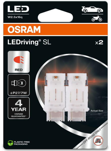 OSRAM LEDriving SL P27/7W piros LED , W2.5x16q foglalat, kiváló fényteljesítmény, ≙ P27/7W, 3157DRP-2BL, 2db/bliszter (3157DRP-2BL)