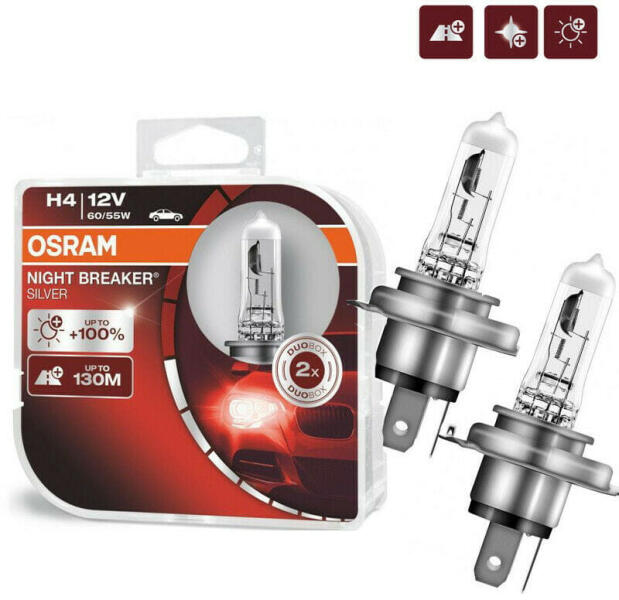 OSRAM NIGHT BREAKER SILVER H4 +100% (2 db / doboz)