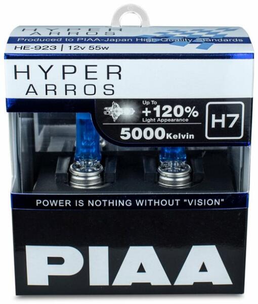 PIAA Hyper Arros 5000K H7 + 120% ragyogó fehér fény, 5000K színhőmérséklet, 2 db (HE-923)